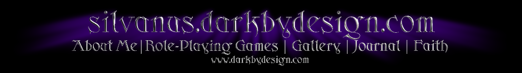 A brief synopsis of my website. Role-Playing is info on Role-Playing Games I play and storytell for. Faery-Faith is the page about my religious faith. If you're really demented, you can read the About Me area, if you do I worry for you. I newly have an online gallery of pictures and recently video. If you really want to delve into my particular insanities, you can read my Journal, that is primarily where I rant at.